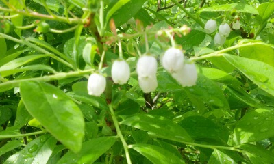 高原ではブルーベリーの花が満開